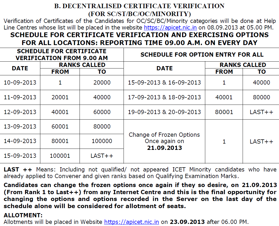 All the Candidates who are appeared for the AP ICET 2013 are now they can get their Web Counselling Schedule, Rank wise Certificate Verification Schedule, Option Entry Schedule from here today by 05:00 PM. All the appeared candidates of ICET 2013 are here by requested that, you can keep check this page for the Latest Details.