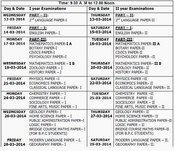 Revised AP Inter 1st Year Time Table 2014 & AP Inter 2nd Year Time Table 2014 :